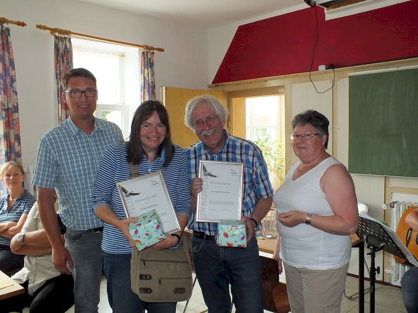 Am Ziel konnten sich die 25 Teilnehmer an einer Erbsensuppe stärken, und sich am Solokonzert von Ralf Grabowski erfreuen. Für ihren unermüdlichen Einsatz wurden die NABU-Mitglieder Petra und Wolfram Heinemann mit Urkunde und Präsent geehrt.