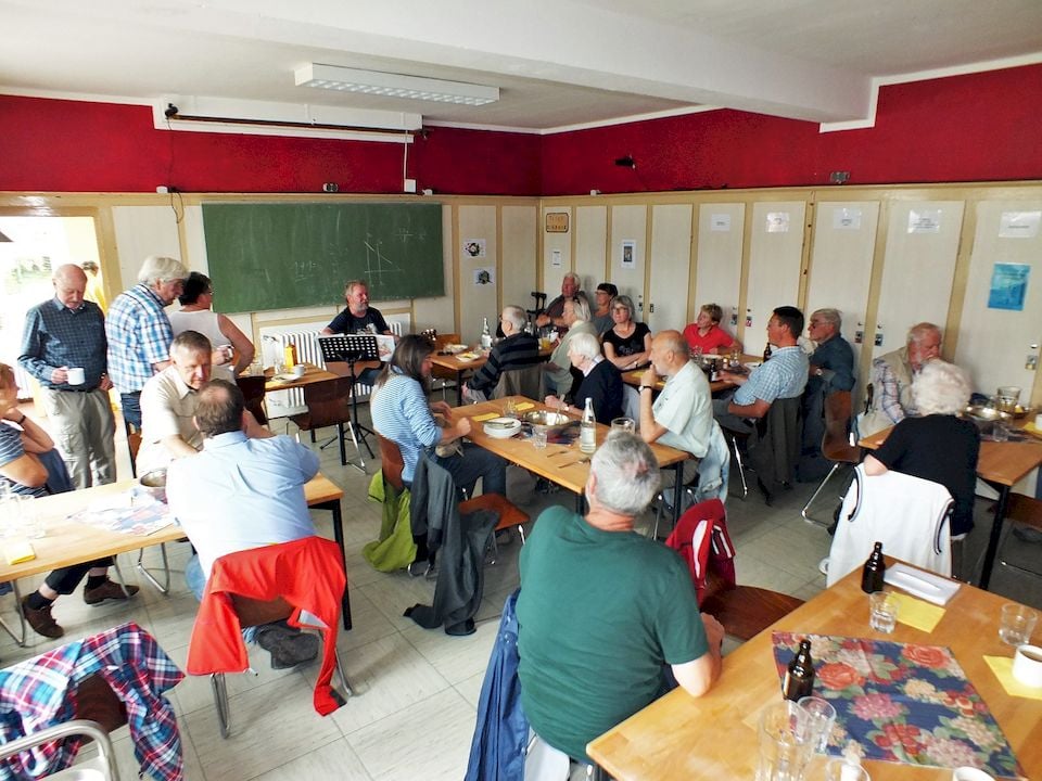 Für das anschließende gemeinsame Abendessen ist eine Voranmeldung erforderlich. Es gibt vegetarische Spezialitäten oder Braunkohl und Bregenwurst zur Wahl. Der Preis beträgt jeweils 12 €, Getränke nicht inbegriffen. Wenn Sie der Tradition folgend Bilder oder Filme zeigen möchten, informieren Sie uns bitte vorher.