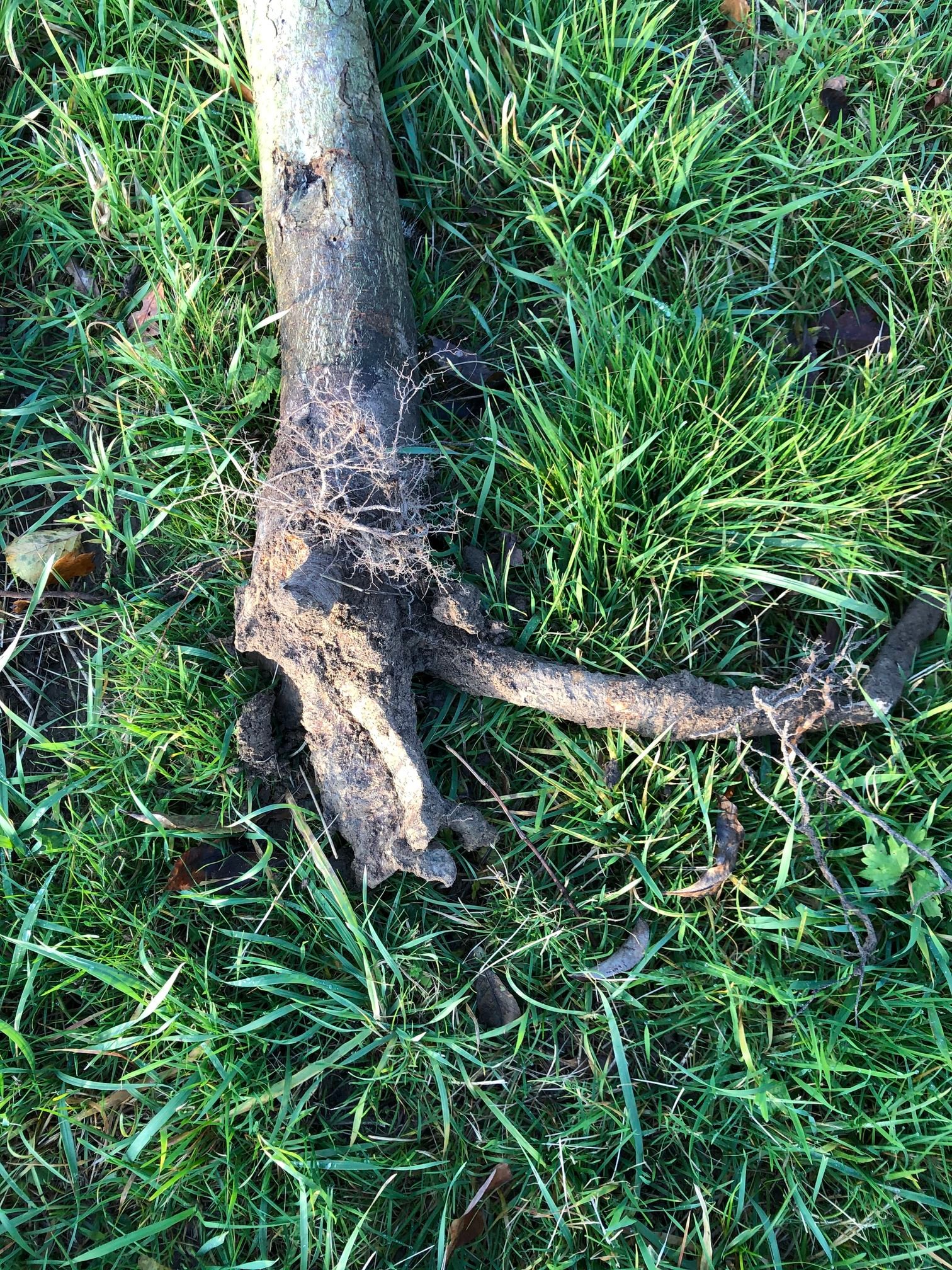 An diesem Apfelbaum der Sorte Ing Marie im achten Standjahr haben die Schermäuse alle Wurzeln bis auf das Holz fein säuberlich abgenagt, obwohl wir 2012 und 2013 alle 80 Obstbäume in ein verzinktes Drahtgeflecht eingepflanzt hatten. Zum Glück hat es nur einen kleinen Teil der Bäume getroffen, die übrigen machen einen vitalen Eindruck. Im Herbst konnte von einigen Bäumen schon kräftig geerntet werden.