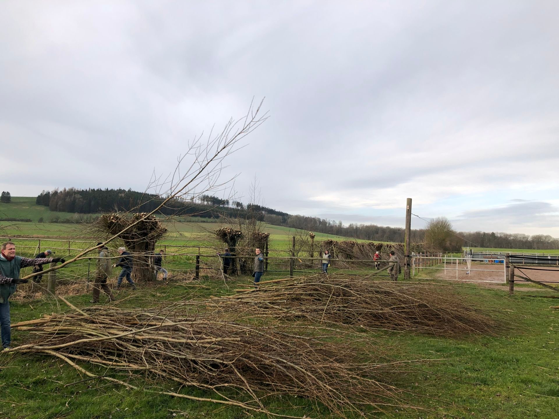 Die abgeschnittenen Äste wurden auf verschiedene Haufen aufgepackt, damit diese später durch ein Lohnunter-nehmen rationell verladen und abtransportiert werden können. Manchen Menschen sind die Äste der Weiden noch durch ihre wirtschaftliche Verwendung bekannt. Insbesondere bei der Flechtung von Weidenkörben und als Verbindungsmaterial mit Lehm als Baumaterial für Hauswände kamen sie zum Einsatz. Heute gibt es kaum noch eine wirtschaftliche Nutzung der Weiden.