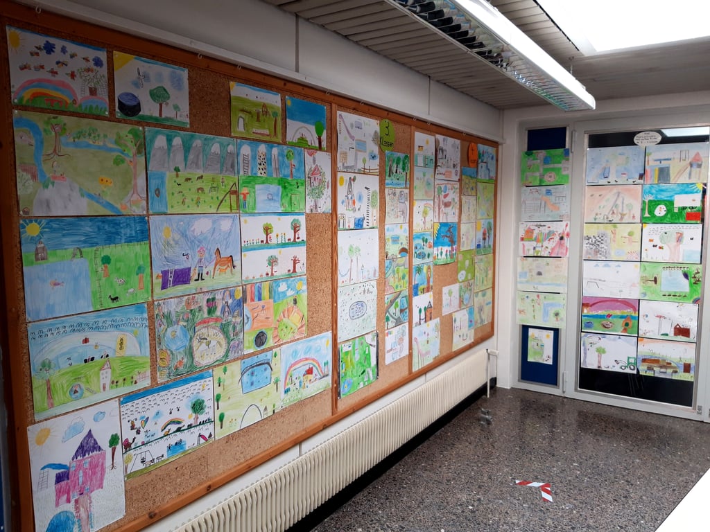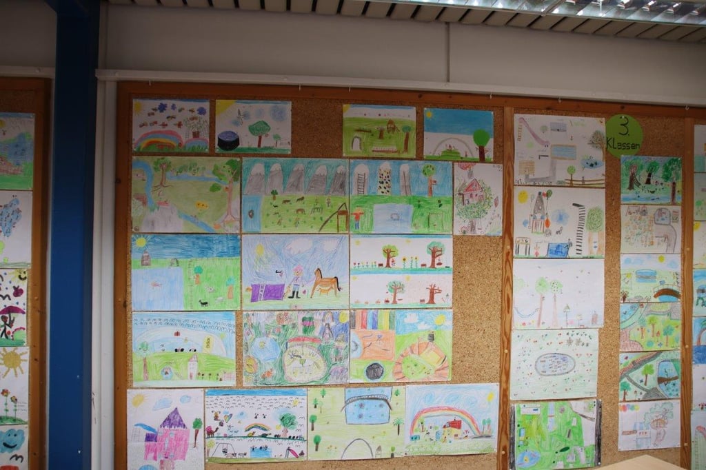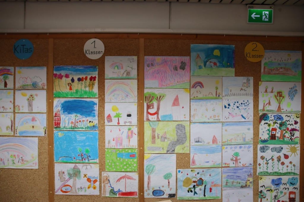 Erfreulich: Viel Grün, bunte Blumen, Obstbäume, auch der besonderen Art, die gleich verschiedene Obstsorten tragen, spiegeln die Ideenwelt der Kinder wider. Baumhäuser, Trampoline, Wasserbecken, Rutschbahnen und andere Spielmöglichkeiten durften auch nicht fehlen. Und nicht zu vergessen: eine bunte Vogel-und Schmetterlingswelt. Schottergärten? Fehlanzeige. Das gibt Hoffnung.