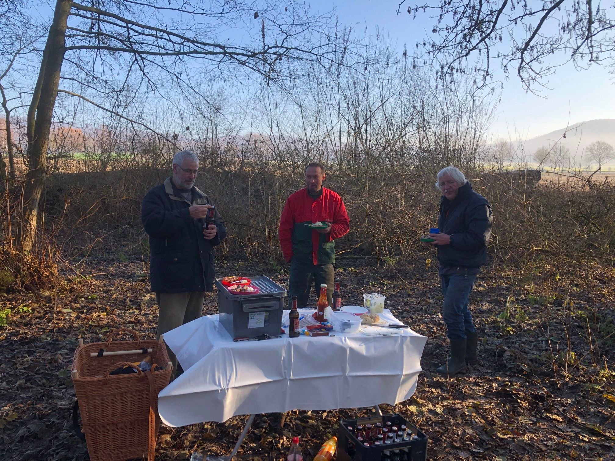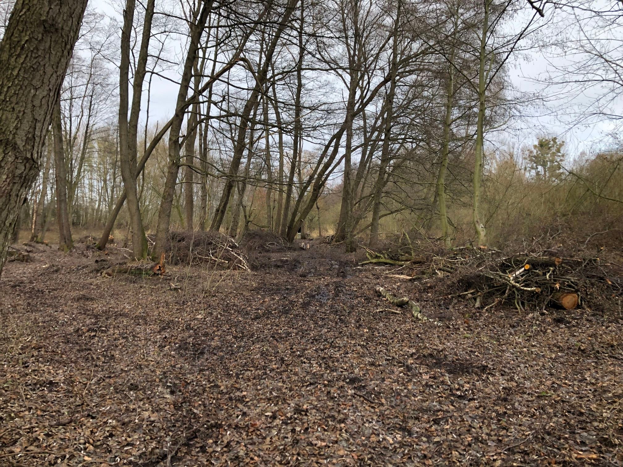 Nach der Brut- und Setzzeit im Herbst 2021 hat der NABU Springe nach Absprache mit der unteren Naturschutzbehörde etliche Bäume fällen lassen Die verwertbaren Bäume (Birken und Erlen) wurden aus dem Bestand gezogen und werden als Brennholz genutzt. Die Weiden und Äste wurden als sog Totholzhaufen aufgeschichtet. Diese dienen nun als Versteck und Brutmöglichkeit für verschiedenen Vögel und Kleinsäuger.