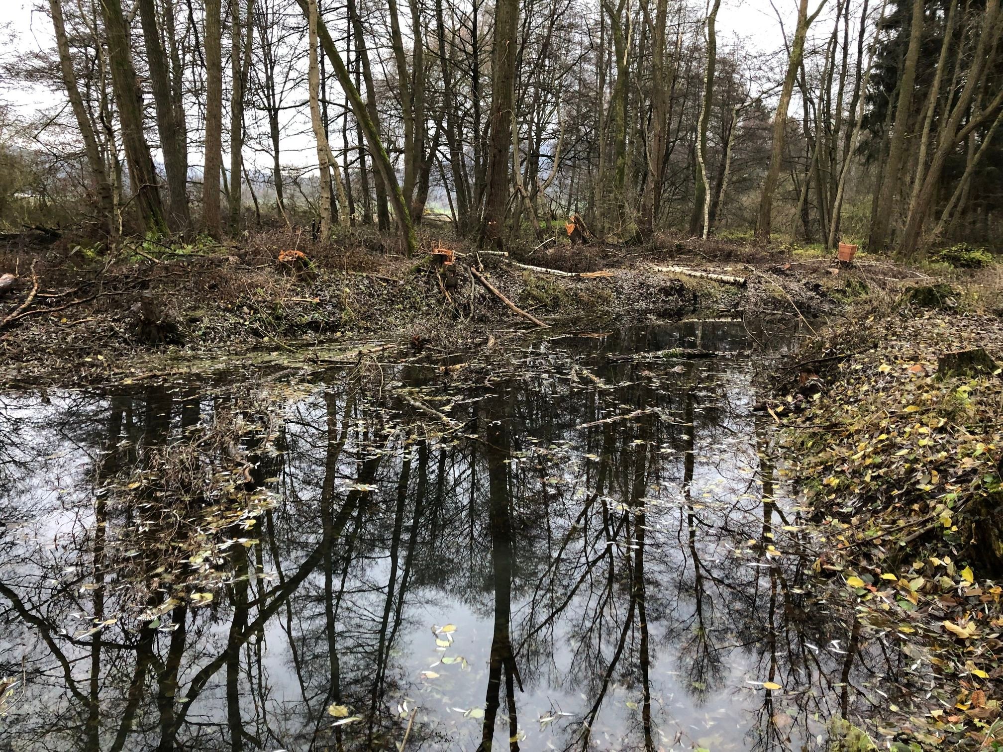 Nun kommt wieder genug Sonne an den Teich und kann diesen im Frühjahr erwärmen. So hoffen wir, dass Amphibien den neuen Lebensraum bald annehmen werden. Im Rahmen eines Monitorings werden wir den Bestand der Amphibien erfassen.