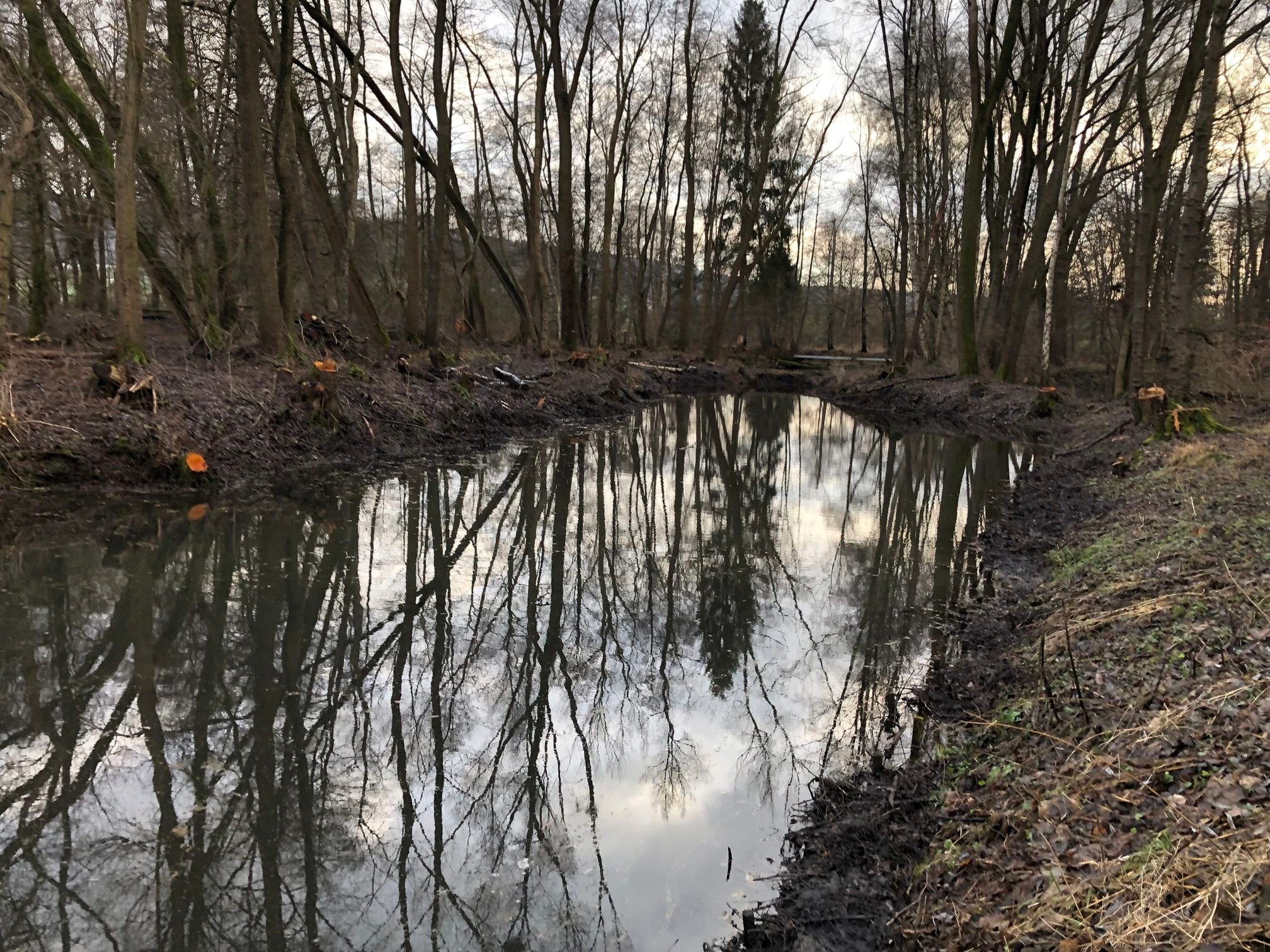 Um hier einen artenreichen Lebensraum für Amphibien und andere wassergebundene Lebewesen zu schaffen ist einiges zu tun - genau die richtige Aufgabe für unseren praktischen und „anfassbaren“ lokalen Naturschutz. Als erstes wurden die Gräben wieder freigelegt und der Wasserzulauf konnte damit gewährleistet werden. Der erste Teich füllte sich gleich wieder mit Wasser.